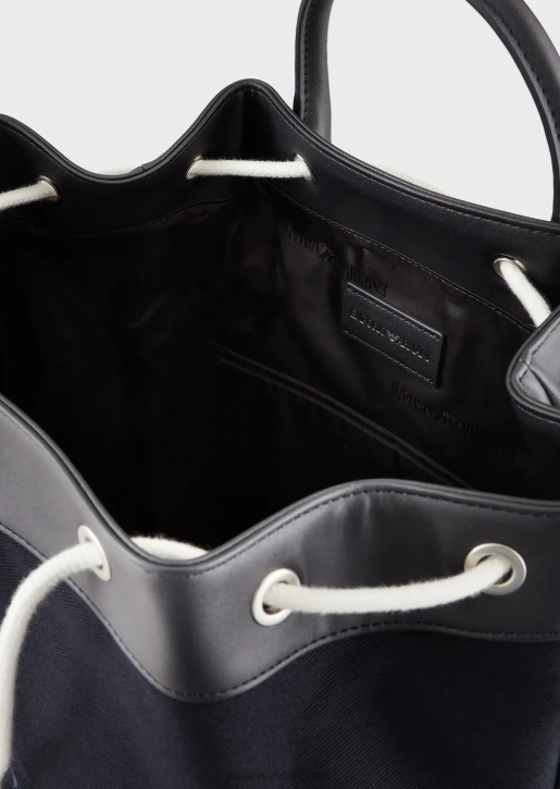 The taste of summer and the coastal climate come together in these accessories inspired by the colours and textures of life at sea. The items from the line are made of cotton canvas combined with leather details, while the Emporio Armani logo is embroidered in a matching tone in the foreground. Bag with a practical side handle and a detachable shoulder strap in logo webbing. Drawstring closure. Measurements: 32.5 x 48.5 x 18 cm.
