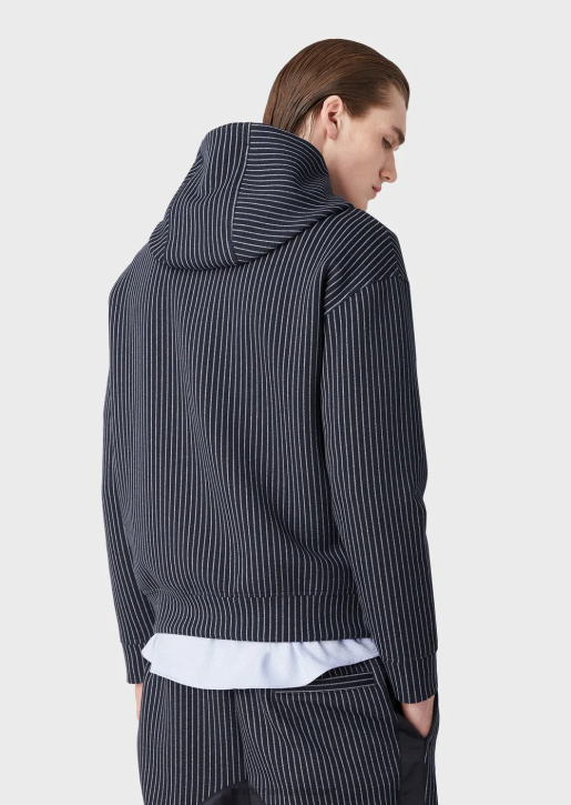 Home| Men| Men 086V1425 Hooded Sweatshirt In Pinstriped Jersey Armani