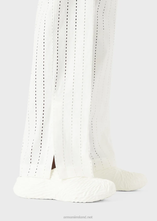Men 086V1457 Striped Perforated Linen Chinos Armani White