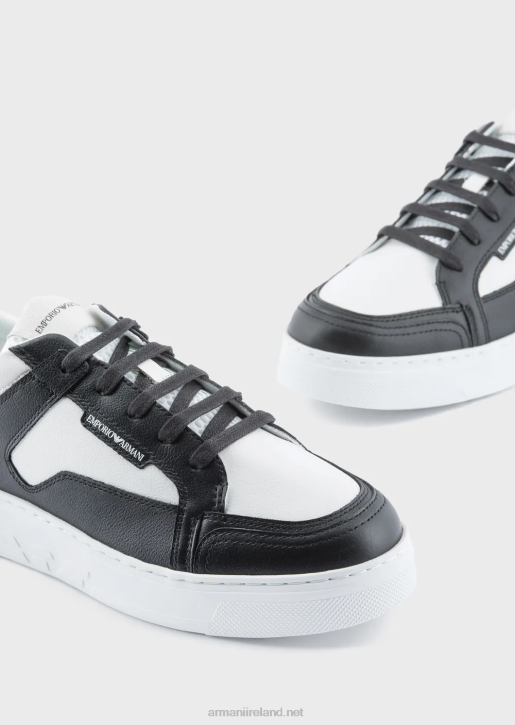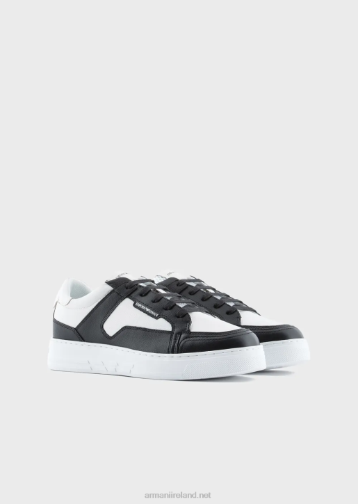 Men 086V1874 Hammered-Leather Sneakers Armani Bianco E Nero